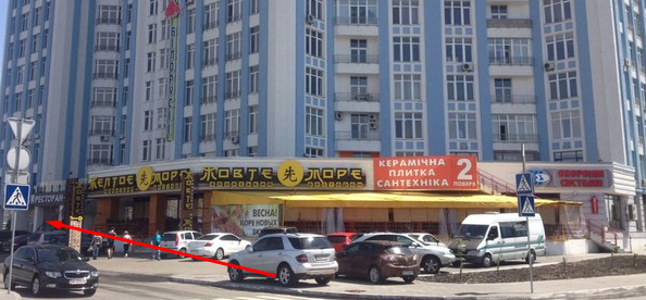 Для того, чтобы найти нужный вход, вам необходимо найти ресторан "Желтое море". Он находится ближе к дороге. Обойдите ресторан слева, как показано на картинке.