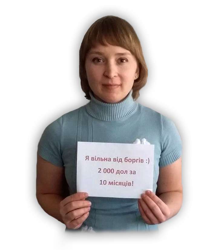 Потом я узнала о стратегии освобождения от долгов Сергея Розвадовского. Всего за 10 месяцев я полностью рассчиталась и стала финансово свободной. Очень рада, что у меня получилось! Смело рекомендую всем должникам)) Спасибо!!